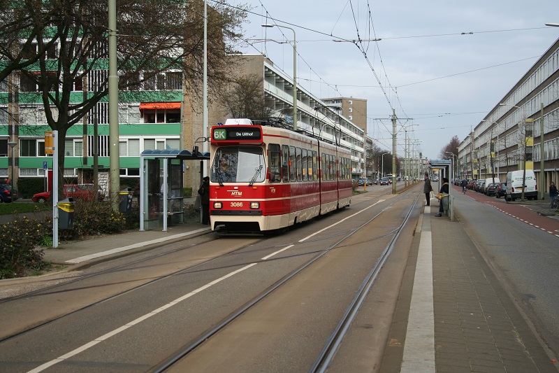 We zien ook een lijn 6K passeren. Lijn 6 is net als lijn 2 gesplitst in twee trajecten vanwege werkzaamheden aan het spoor tussen station Den Haag Centraal en Ternoot. De sporen worden vernieuwd en komen met minder verkanting te liggen, na een ontsporing van een RandstadRail voertuig op deze plek. Lijn 2 en 6 rijden daardoor vanuit Zuidwest Den Haag niet verder dan station Den Haag Centraal. Vanaf daar moeten reizigers met de bus naar station Laan van NOI of het Stuyvesantplein vanaf waar de tram weer rijdt.
