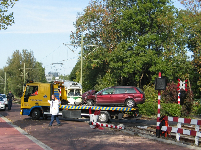 Op de Delftweg krijgt de 3007 richting Delft Tanthof te maken met een flinke aanrijding. Een automobilist wil de sporen oversteken en ziet daarbij de naderde 3007 over het hoofd. Er ontstaat flinke schade en de auto raakt total loss. Aan de tram is ook flinke schade en de technische dienst moer eraan te pas komen om loszittende obstakels te verwijderen. De 1022 komt vanuit het museum ook even een kijkje nemen.