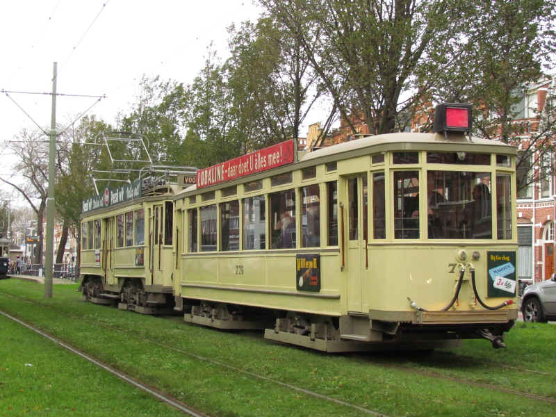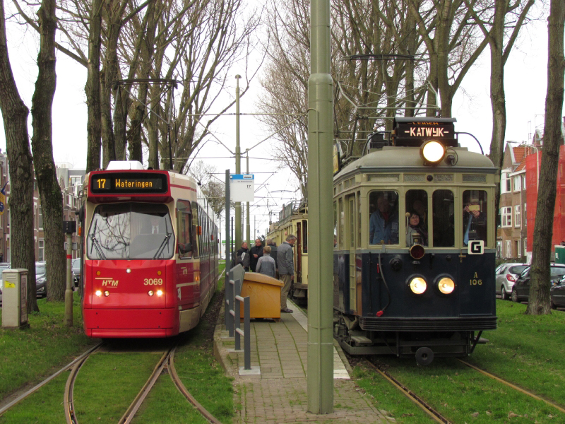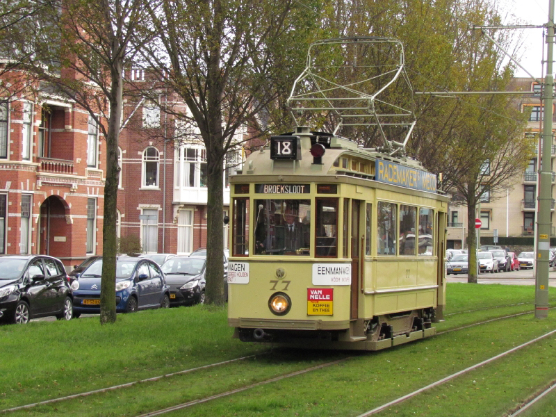 Op zaterdag 28 november viert de Stichting Historisch Genootschap de Blauwe Tram” haar 30e verjaardag. Na een bijeenkomst in de zaal Voorhof in de Herenstraat te Voorburg wordt er voor deze gelegenheid een tramrit aangeboden aan de genodigden. Bijzonder is de eerste echte inzet van de NZH A106. Verder rijen het buitenlijnstel 58 + 779 en de HTM 77 mee. Deze speciale rit ging vanaf Voorburg Station via het Kerkplein naar het Statenkwartier en terug. Wij nemen een kijkje op de Statenlaan.