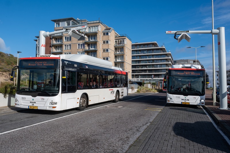 De 1001 en 1132 aan het eindpunt Kijkduin met elektrische laadpaal