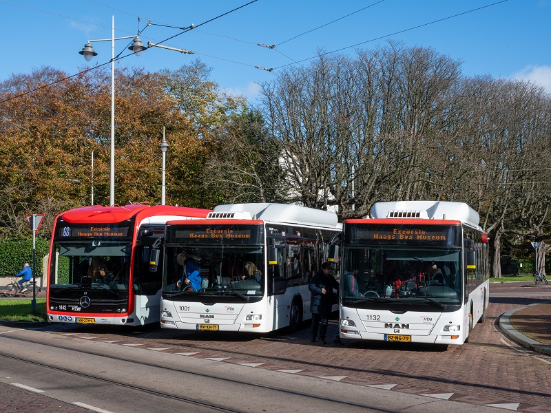 De 1001 is in 2009 de eerst afgeleverde MAN LIONS CITY CNG aardgasbus en de 1132 de laatste. Deze bus maakt een jarenlange uitstap naar Connexxion en EBS en keert in 2020 terug bij HTM. De 1132 rijdt tijdens de excursie voor de 1001 en 1442 uit als bus voor de fotografen. Een andere 1000 die bewaard zal blijven bij het Haags Bus Museum zou eigenlijk rijden, maar vanwege een defect blijft deze bus thuis.
