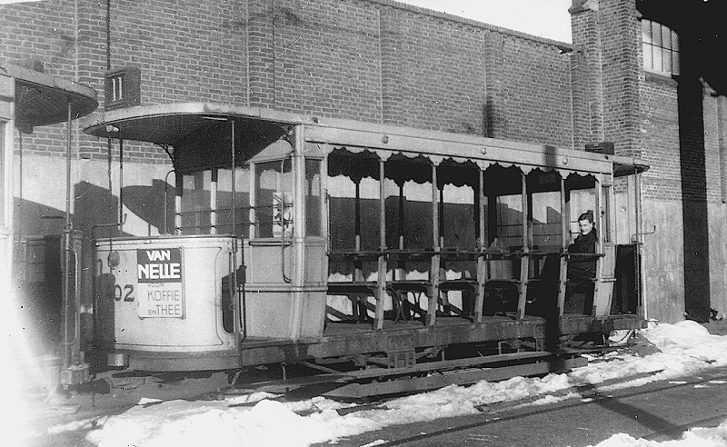 De 402 is een originele paardentram van de HTM uit 1896 (nummer 202) en wordt na 1904 omgebouwd voor de dienst achter de beugeltrams waar deze tot 1946 vooral op de Scheveningse lijnen rijdt.