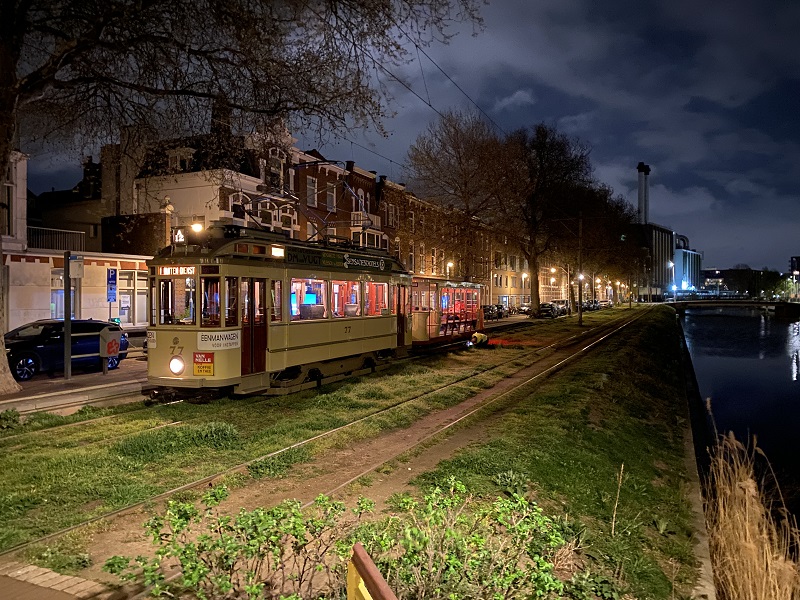 Open tram 402 is in de nacht van 9 op 10 april voor het eerst sinds zijn restauratie het Haagse tramnet opgegaan. De zomerwagen maakt op het traject van lijn 11 naar Scheveningen een proefrit met Ombouwer 77. Doel van de test is het beoordelen van de loop- en remvertraging en het meten van een snelheid van 40 kilometer per uur. De combinatie loopt zeer rustig en de remvertraging is ruim voldoende. Behalve met de 77 zullen nog andere combinaties met de 402 worden beproefd.