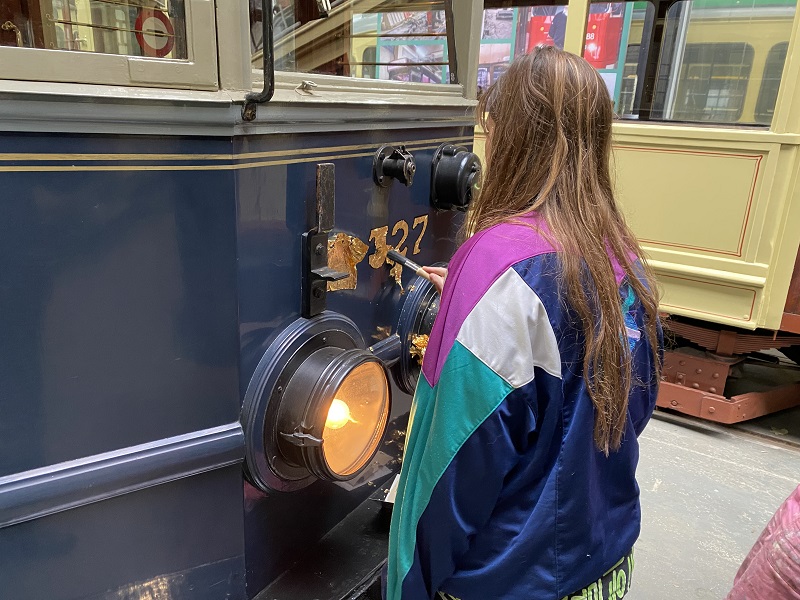 Blauwe tram A327 krijgt bladgoud op de wagennummers en bedrijfsemblemen, de oude waren wat vaal geworden. Het resultaat ziet er prachtig uit. Rondom en aan de 294 worden diverse werkzaamheden verricht. Zo gaat een klapbankje uit de 814 naar deze tram, het onderdeel is in de vernis gezet.