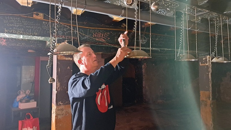 Het demonteren van de lampen in Lokaal Vredebreuk