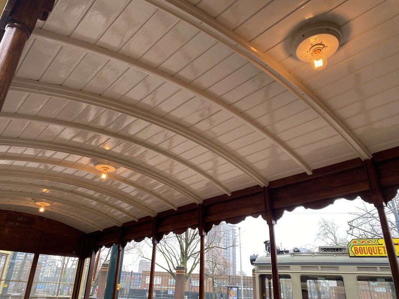 PCC 1227 heeft de plafondlampen die aangaan als de uitstapdeuren open gaan weer terug. De verlichting hangt na een actief PCC leven jarenlang boven de bar van Lokaal Vredebreuk in de Haagse Papestraat. Daar worden de lampen ontdekt door onze John Baltus die ze mag meenemen van de horeca-eigenaren en ze nu weer heeft opgehangen in de tram.
