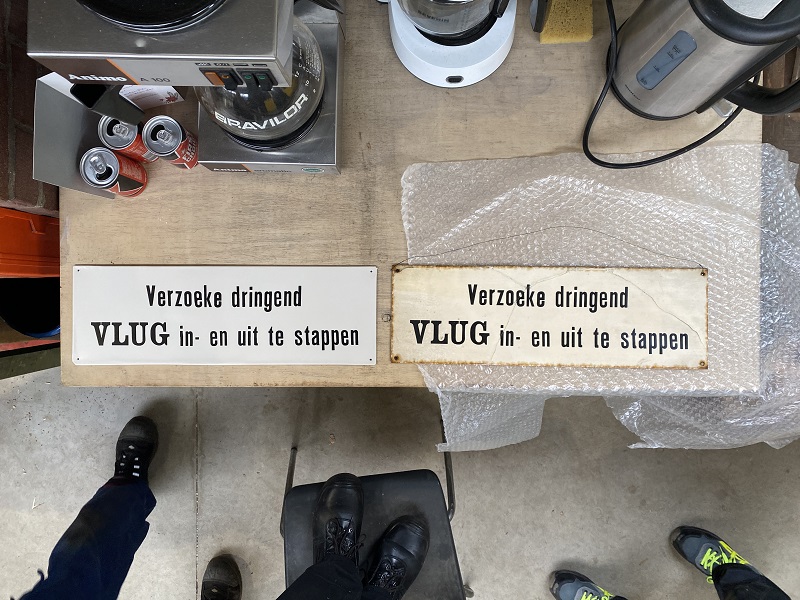 Ondertussen blijven ook de details belangrijk: zo is er een nieuw bordje gemaakt voor de 402 met de tekst: ‘Verzoeke dringend VLUG in- en uit te stappen’.