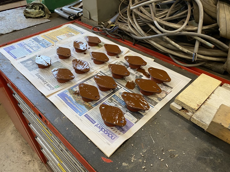 Onderdelen voor de banken van de 294 in de lak gezet