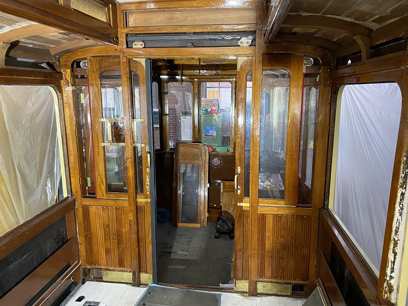 Een andere flinke klus is het aanbrengen van ledverlichting in PCC 1022. Ondertussen gaan de zondagse ritten ook gewoon door. In regenachtig weer vertoont PCC 1304 zich bijvoorbeeld buiten waarbij de tram onder meer de keerlus Madurodam en Delft aan doet.