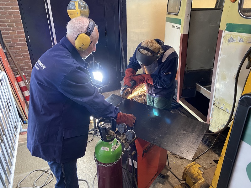 We werken hard door aan onze museumtrams. Aan het interieur van de 294 bijvoorbeeld. Na het afwerken van het plafond zijn de banksteunen in de lak gezet. Bij de 215 is de groene verf gepakt om de niet meer zo fraaie bovenplaten van de schakelkasten weer een fris kleurtje te geven.