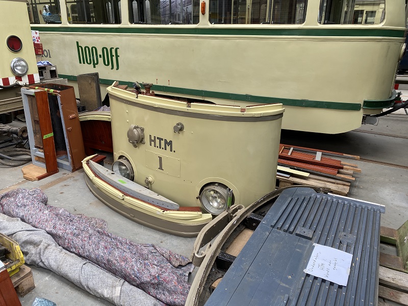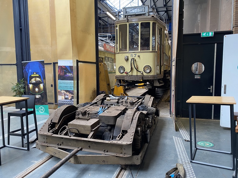 Soms ontstaat er zo maar een mooie line-up op ons remiseterrein maar ook achter de schermen is er de nodige activiteit. Zo rangeren we zaterdag met verschillende trams om ruimte te maken voor de twee draaistellen van Buitenlijner 57 waarvan we de eerste onder de tram vandaan rollen. Ook moet Tourist Tram 1180 naar een put om daar te kunnen werken aan de door een zware aanrijding ontstane schade.