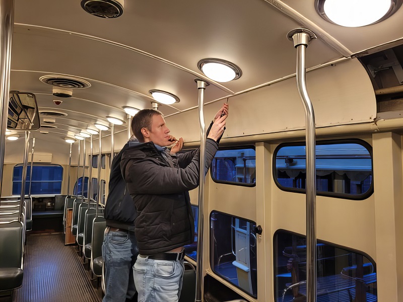 Blauwe Tram A106 zetten we nog in voor een verhuurde rit over lijn 2 naar Kraayenstein. Daarnaast werken we in de winter ook door aan onze museumtrams. De afgelopen weken heeft PCC 1022 ledverlichting en een init installatie gekregen. Met init regelt de trambestuurder bijvoorbeeld de bediening van de wissels. Zaterdag rijdt de 1022 een testrit waarbij onze technici kijken of het werkt en de verlichting aanblijft. Dat blijkt beiden het geval. Verschillende delen van het interieur hebben ook een nieuwe verflaag gekregen.