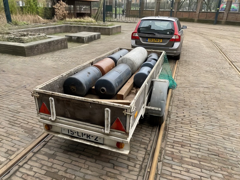 Verschillende luchtketels komen na een keuring bij de collega’s van Stoomtram Hoorn Medemblik weer terug bij het HOVM. Alle acht ketels zijn goedgekeurd. Dat betekent goed nieuws voor de revisie van Zwitser 215.  Want onder deze ketels bevinden zich drie hoofdreservoirs,  twee noodremreservoirs en een ketel voor de deurbediening van deze tram.