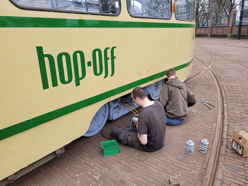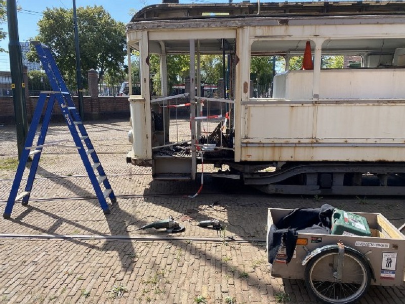 Open tram 402 krijgt steeds meer kleur. Zo zijn de balkonschermen gelakt en de afsluitstangen mooi bruin geschilderd. De deuren van de 294 krijgen weer glas en bij Tourist Tram 1101 worden de beschadigde netwerkkabels van het audiosysteem vervangen. Een ingrijpende klus waarbij stoelen uit elkaar moeten, stangen losgehaald worden en lamp armaturen er uit gaan.