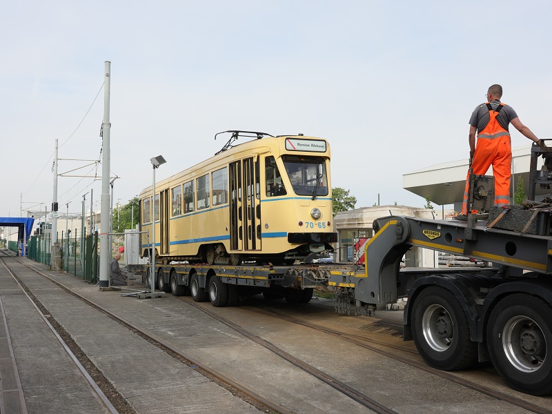 Na meer dan een jaar gaat PCC 7065 terug naar Brussel. Transporteur Van der Vlist brengt de tram naar stelplaats Haren. Daar rijdt de tram soepel van de oplegger af om koers te zetten naar een voor hem vertrouwd adres: het trammuseum aan de Tervurenlaan.
