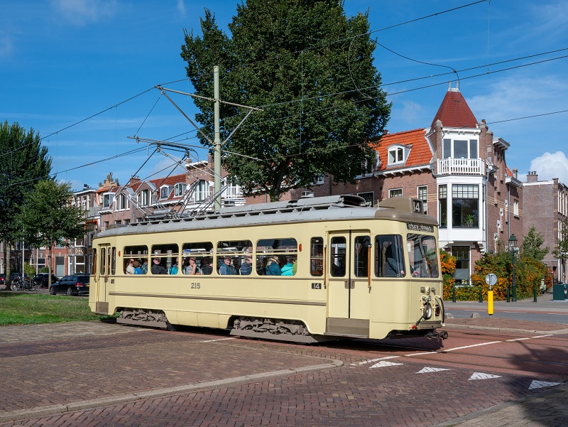 Zwitser 215 maakt deze maand ook zijn eerste echte publieksritten na zijn grote revisie. Aan deze eerste naoorlogse tram is zo’n elf jaar hard gewerkt, maar het resultaat mag er zijn. De tram zoeft over de rails en komt op plekken waar hij in de dienst vaak is geweest zoals via de oude lijn 9 naar Scheveningen of de oude route van lijn 3 en 14 over de Laan van Meerdervoort naar het De Savornin Lohmanplein.