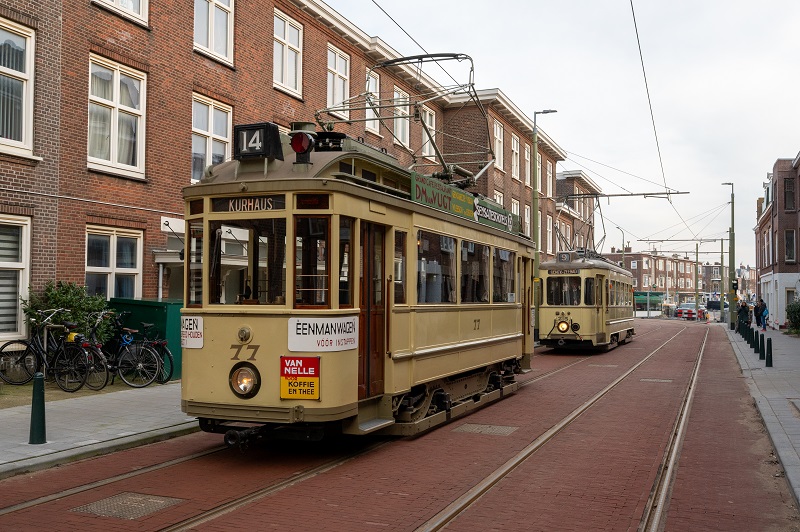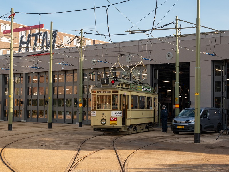Museumtrams van het Haags Openbaar Vervoer Museum schitteren donderdag bij de heropening van de remise Scheveningen. De remise heeft na een renovatie van twee jaar de deuren officieel weer geopend. Ombouwer 77 en Zwitser 215 komen voor deze gelegenheid weer eens op voor hun bekend terrein. De 77 is gerestaureerd in de pekelremise Scheveningen en wordt door HTM’ers dan ook warm welkom geheten.