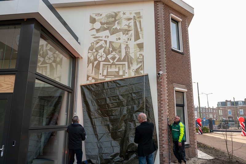 Onthulling van het kunstwerk op de gevel van de remise