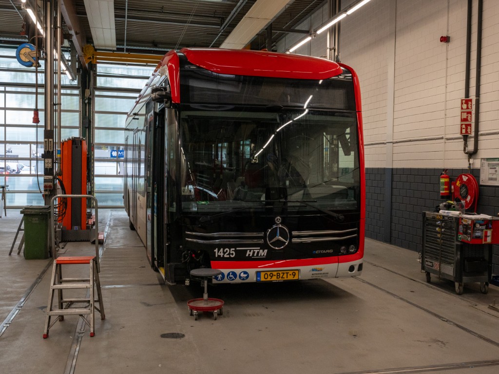 De nieuw eCitaro bus moet eens per 15 duizend kilometer naar binnen om onderhoud te krijgen. Maar ook als er iets stuk gaat repareert HTM de bus hier.  Zeven dagen per week staan 22 monteurs klaar om de bussen in goede conditie te houden en ervoor te zorgen dat de reiziger niet voor niks aan de halte staat.