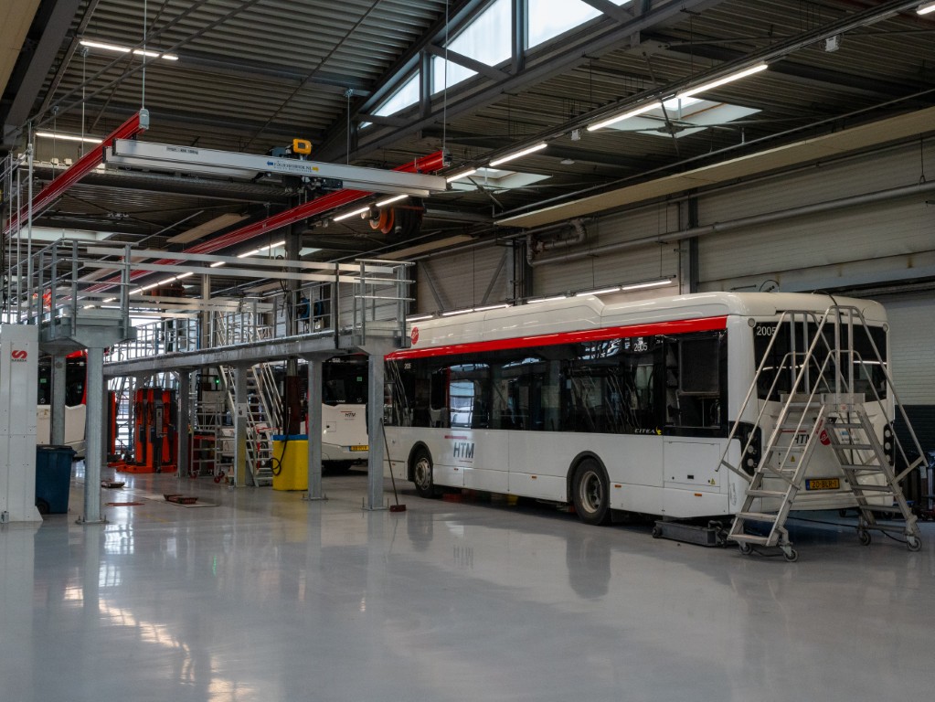 Zware accu pakketten die onder andere op het dak geplaatst zijn kunnen met een nieuwe portaalkraan vanaf het dak getakeld worden. In de media hebben we al kunnen lezen dat een aantal bussen helaas een aanrijding hebben gehad. HTM heeft een eigen schadeherstel. In het grote magazijn liggen tal van onderdelen waarmee men snel bussen kan herstellen. Onderdelen kunnen ook bij Mercedes besteld worden en deze worden binnen 48 uur bij HTM afgeleverd. Het is een groot voordeel dat in vele steden in binnen en buitenland de eCitaro is komen te rijden of gaat rijden.