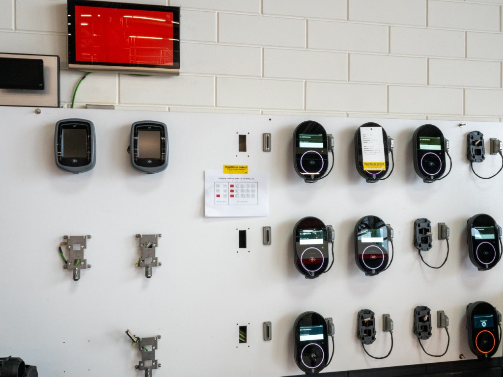 Banden wisselt men natuurlijk ook. Wist u dat er 9 Bar spanning op een voorband staat? Op de achter banden is de druk iets lager. Maar om ongelukken te voorkomen wordt een band in een eigen kooi opgepompt. Wat nog in de werkplaats moet worden ontwikkeld is een ruimte om accu’s te reviseren en cellen in een accupakket te wisselen. Voor andere onderdelen zoals OV-Chipcard readers en reizigers informatiesystemen kan men nu al zelf testen en repareren.