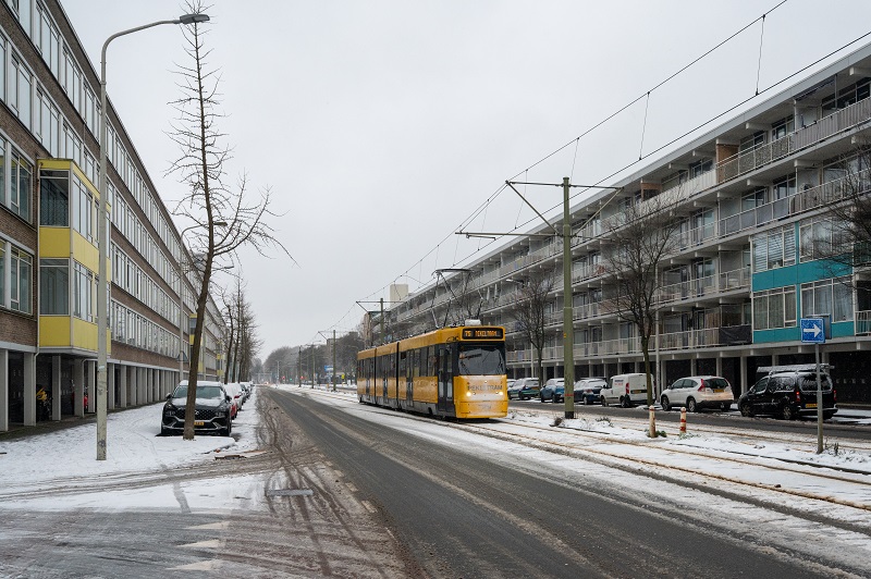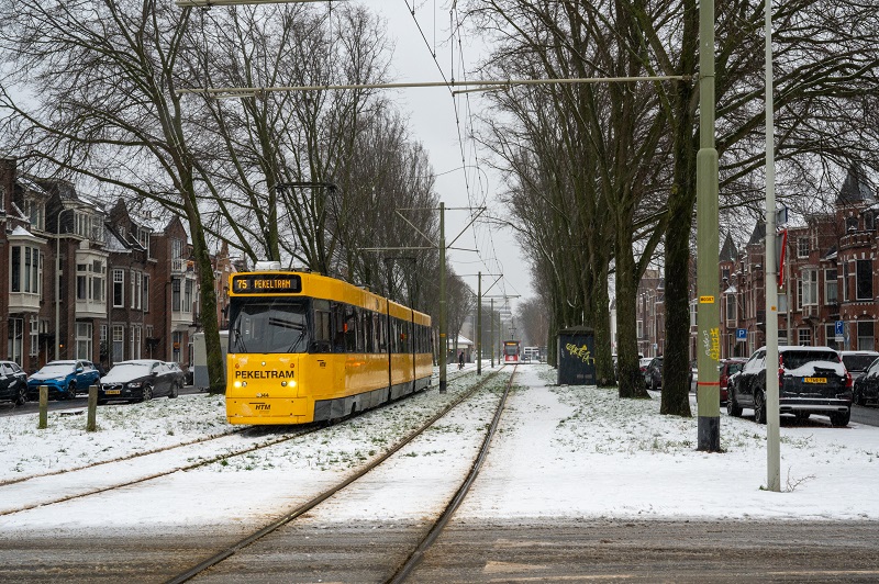 Op een paar wisselstoringen na hebben de trams goed door kunnen rijden. De bussen van HTM rukken woensdag even na tien uur uit en blijven vanwege de gladheid tijdens de ochtendspits in de stalling aan de Telexstraat. De dagen daarvoor hebben gelede bussen soms moeite met het nemen van hellingen zoals bij het Soestdijkseplein.