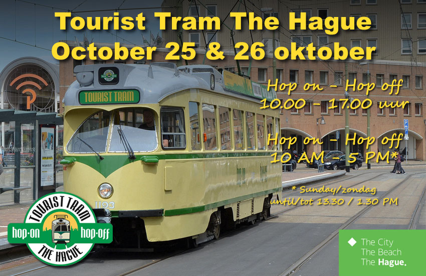 Enjoy autumn in The Hague and go to shops, museums, restaurants or Scheveningen by Tourist Tram. Hop on – Hop off every 30 minutes between 10:00 AM and 5:00 PM in the cream-green trams and discover The Hague in a fun and special way!