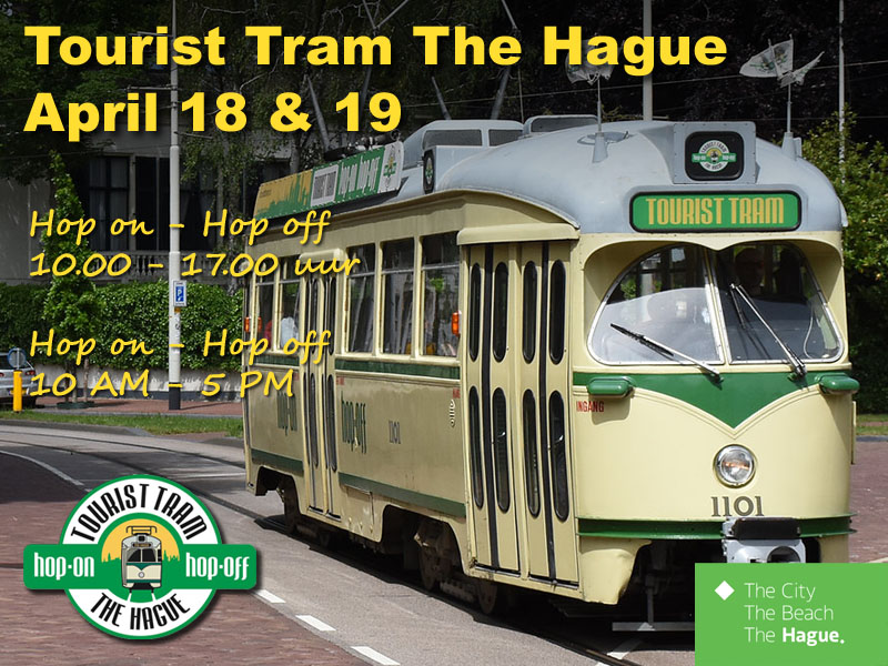 Visit sunny The Hague with the Tourist Tram! On Saturday April 18, and and Sunday April 19, the Tourist Tram will run a fun tourist route every 30 minutes through the Hofstad between 10 AM and 5 PM. Hop on – Hop off as often as you like and visit shops, museums, Scheveningen and the beach!